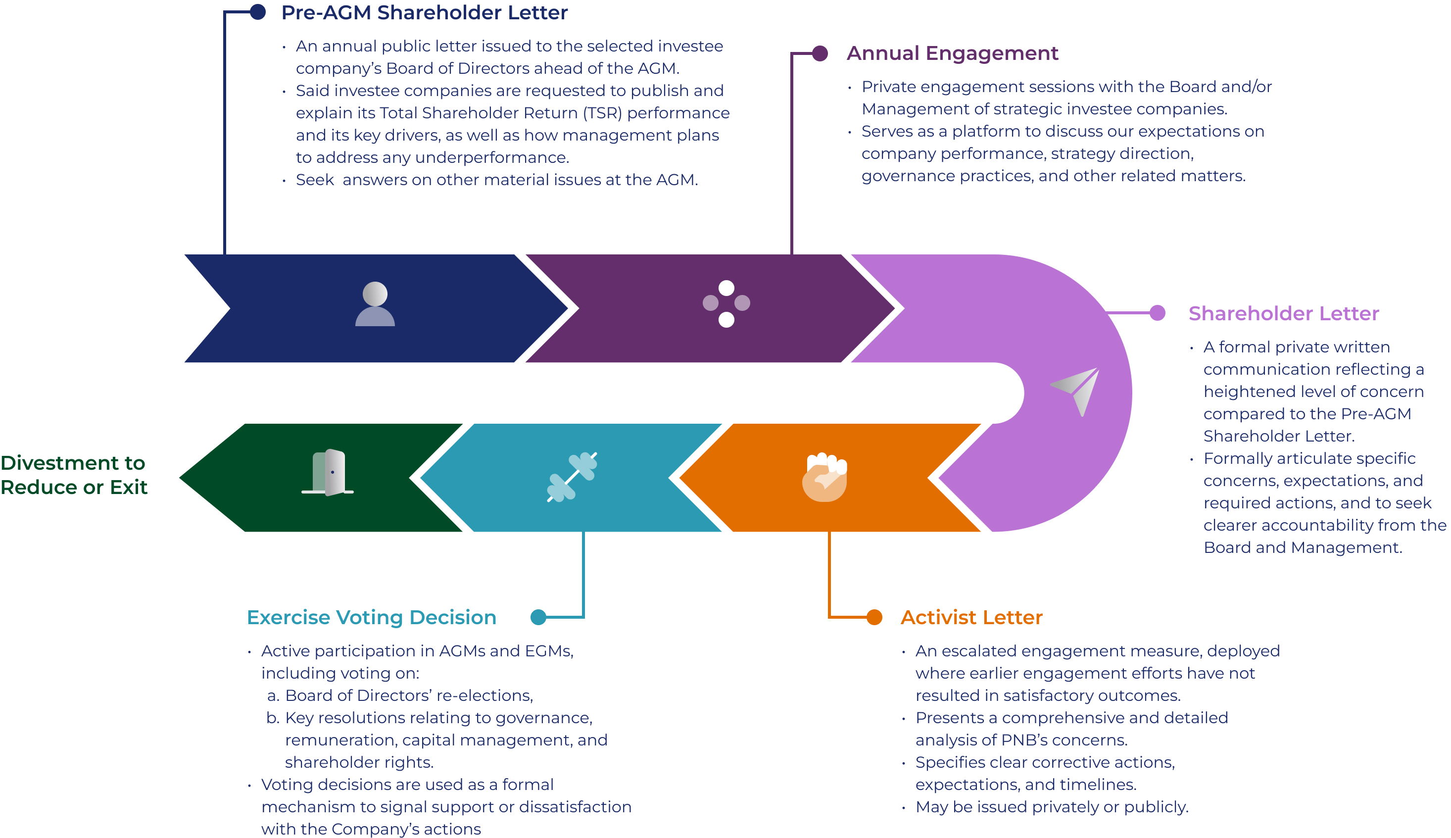 Advocacy of good corporate governance, transparency and responsible investment, in line with industry best practices and Voting Guidelines of PNB.